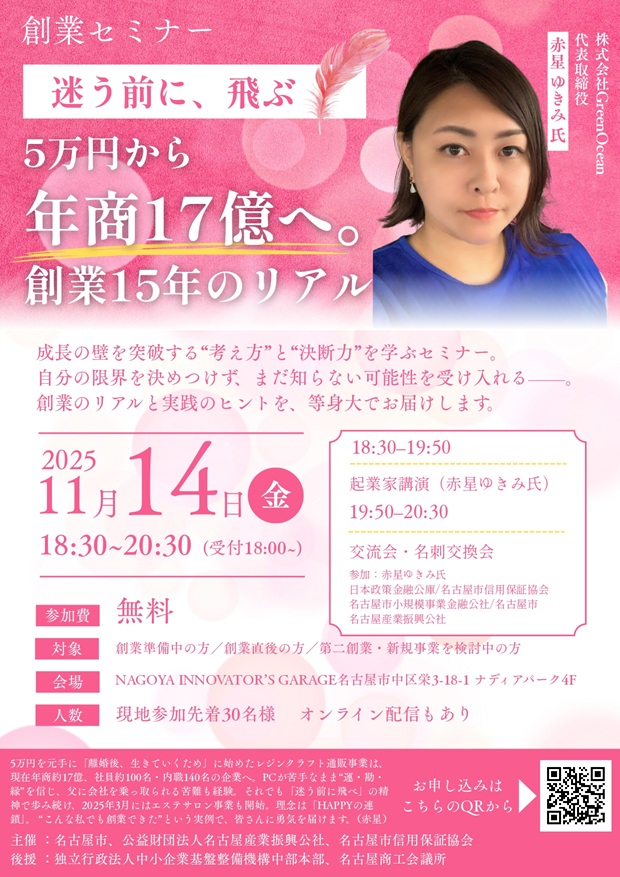 創業セミナー“「迷う前に、飛ぶ」—— 5万円から始めて、年商17億円へ。”開催のご案内